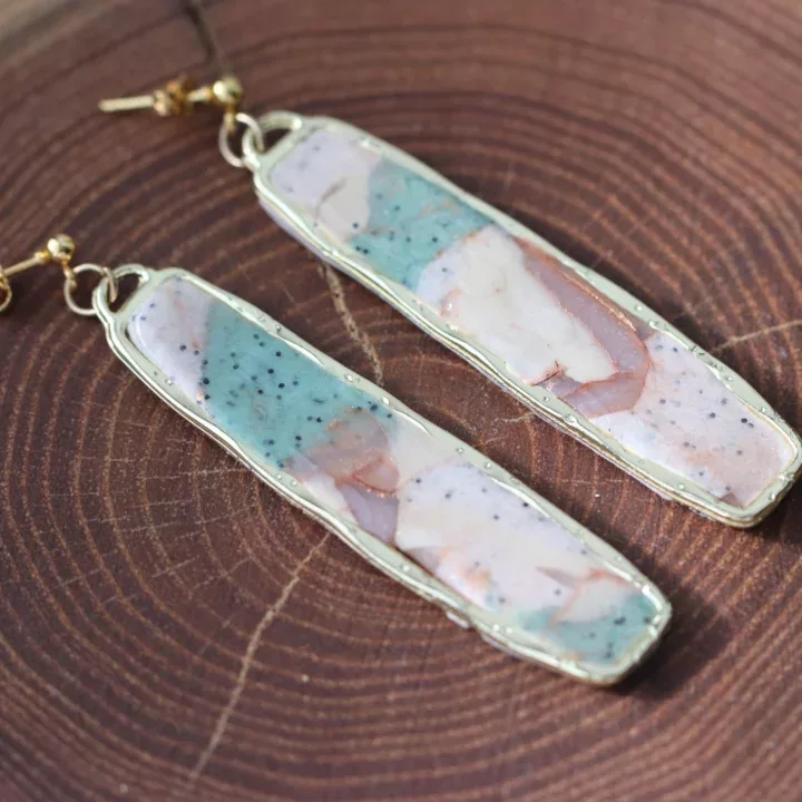 Miniberry prináša novú kolekciu ručne modelovaných šperkov z polymérovej hmoty. Vyber si tieto podmanivé náušnice, ktoré podčiarknu akýkoľvek outfit v jemných mentolovo – granitovo – natur tónoch s korálkami. Vďaka nenápadným odtieňom ti tak budú spríjemňovať každý bežný deň. Náušnice sú modelované z polymérovej hmoty, zlatých plátkov a bronzového pigmentu, ošetrené kryštálovou živicou a doplnené originálnymi komponentmi z chirurgickej ocele v odtieni zlata.