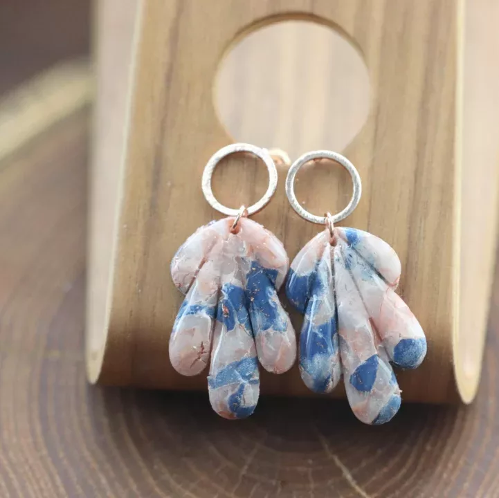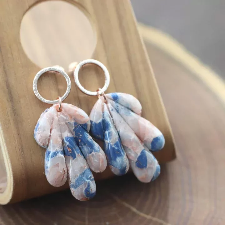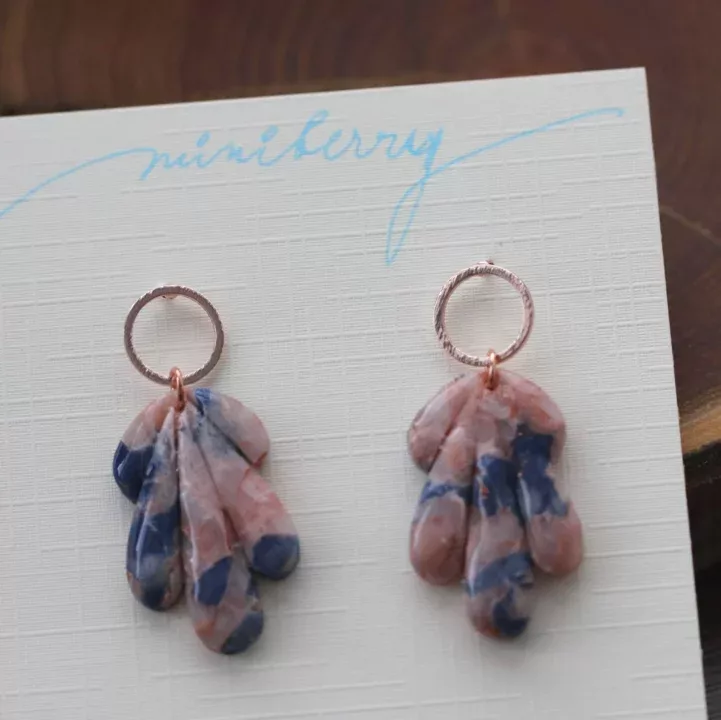 Miniberry prináša novú kolekciu ručne modelovaných šperkov z polymérovej hmoty. Vyber si tieto podmanivé náušnice, ktoré podčiarknu akýkoľvek outfit v jemných ružovo-modrých tónoch. Vďaka nenápadným odtieňom ti tak budú spríjemňovať každý bežný deň. Náušnice sú modelované z polymérovej hmoty, zlatých plátkov a bronzového pigmentu, ošetrené kryštálovou živicou a doplnené originálnymi komponentmi z chirurgickej ocele v odtieni ružového zlata.