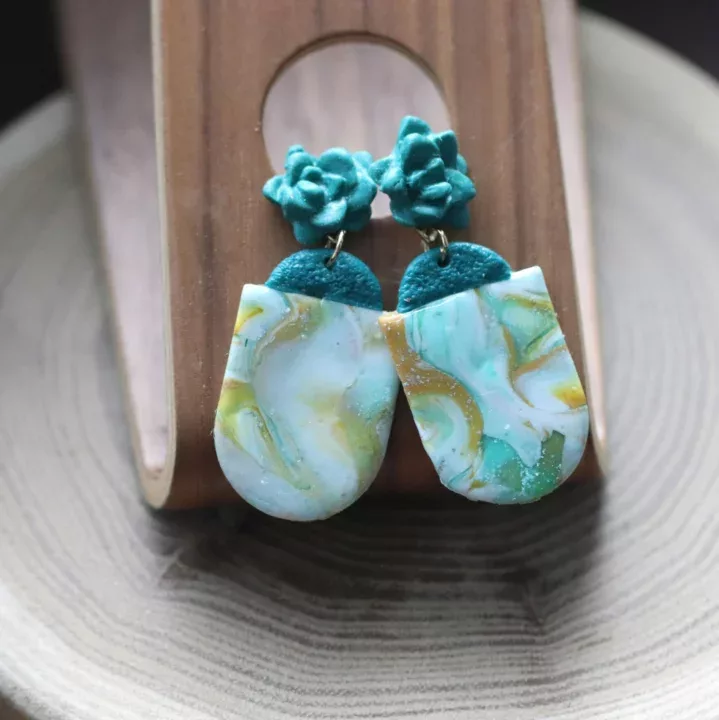 Miniberry prináša novú kolekciu ručne modelovaných šperkov z polymérovej hmoty. Vyber si tieto podmanivé náušnice, ktoré podčiarknu akýkoľvek outfit v kontrastných tyrkysovo-horčicových tónoch. Vďaka nápaditým odtieňom ti tak budú spríjemňovať každý bežný deň. Náušnice sú modelované z polymérovej hmoty, zlatých plátkov, ošetrené kryštálovou živicou a doplnené originálnymi komponentmi z chirurgickej ocele v zlatom odtieni.